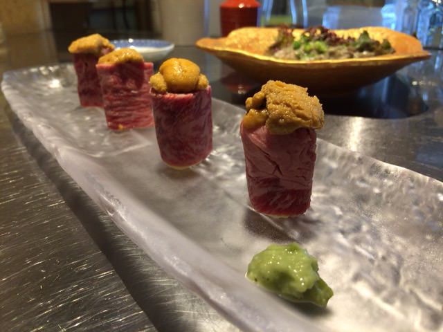 勝どき「かねます」の極上ウニを牛肉で巻いちゃうヤツがやばすぎる : Blog @narumi